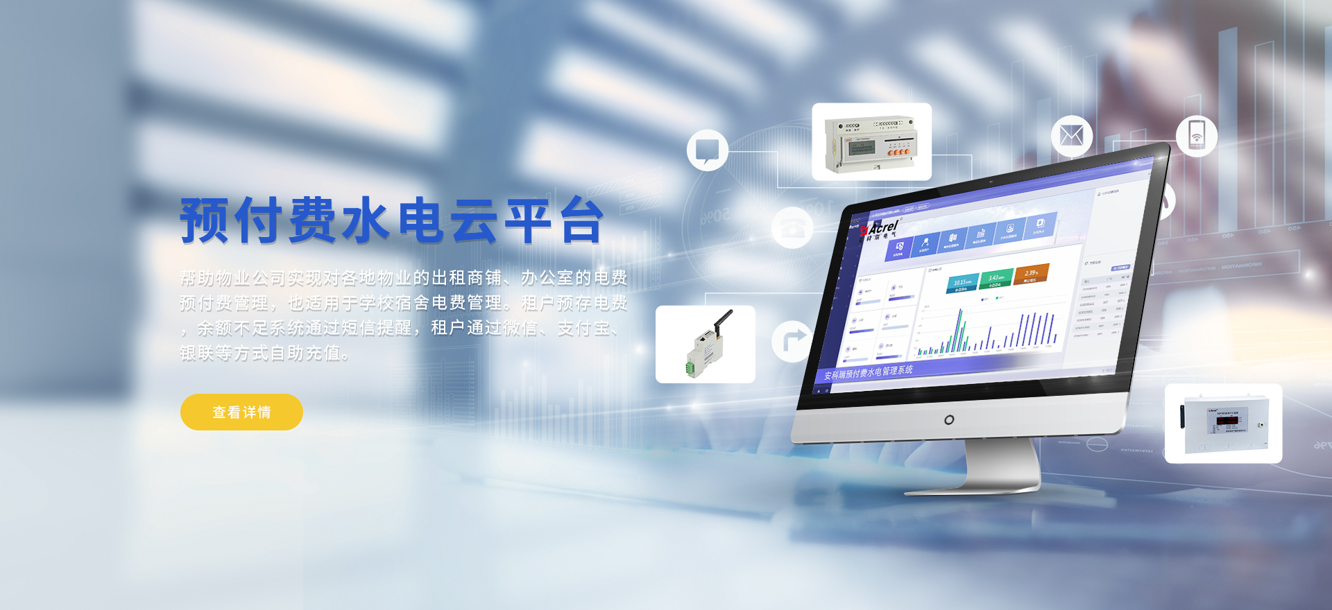 安科瑞提供的解決方案包括Acrel-EIoT能源物聯(lián)網(wǎng)云平臺(tái)變電所運(yùn)維云平臺(tái)安全用電管理云平臺(tái)、環(huán)保用電監(jiān)管云平臺(tái)智慧消防云平臺(tái)、能源管理云平臺(tái)、工業(yè)企業(yè)能源管控平臺(tái)、遠(yuǎn)程預(yù)付費(fèi)云平臺(tái)、餐飲油煙監(jiān)管云平臺(tái)、電動(dòng)汽車/電瓶車充電樁收費(fèi)管理云平臺(tái)、電力監(jiān)控/無線測(cè)溫系統(tǒng)、電能質(zhì)量治理系統(tǒng)、電氣火災(zāi)監(jiān)控系統(tǒng)、消防設(shè)備電源監(jiān)控系統(tǒng)防火門監(jiān)控系統(tǒng)、應(yīng)急照明和疏散指示系統(tǒng)、智能照明控制系統(tǒng)、醫(yī)用隔離電源絕緣監(jiān)測(cè)系統(tǒng)等,幫助用戶實(shí)現(xiàn)能源智能化、可視化、精細(xì)化管理,提高用能效率和用能安全,為企業(yè)節(jié)能降耗和實(shí)現(xiàn)能源數(shù)字化建設(shè)提供數(shù)據(jù)服務(wù)。